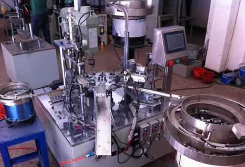 該閥門組裝機,其特征在于其包括主盤組裝機架,主盤組裝機架上設有驅動裝置和傳動裝置,主盤組裝機架還設有在傳動裝置的傳動軸上由下到上依次連接的下頂桿轉盤組件,封蓋供料組件,閥桿供料組件,閥嘴供料組件和上導正頂桿轉盤組件,主盤組裝機架上設有出料軌道。 該閥門組裝機,其特征在于所述的閥桿供料組件包括閥桿供料盤,閥桿供料盤上設有可在閥桿供料盤上旋轉的閥桿進料架,閥桿供料盤上設有閥桿進料環(huán)形軌道,閥桿進料環(huán)形軌道包括張開段和收緊段,閥桿進料架上設有多個可在閥桿進料架上橫向移動的閥桿推塊,閥桿推塊的外側設有閥桿夾塊,閥桿推塊的內側設有卡入閥桿進料環(huán)形軌道的閥桿滾輪,主盤組裝機架上還設有閥桿導正夾塊架,閥桿導正夾塊架的上端設有裝在閥桿夾塊旁邊的閥桿導正夾塊,閥桿供料盤上還連接有將閥桿送入到閥桿供料盤的閥桿送料軌道,閥桿送料軌道與閥桿夾塊相通。 該閥門組裝機,其特征在于所述的閥嘴供料組件包括圓形的閥嘴供料主盤,閥嘴供料主盤上周圍設有多個閥嘴卡槽,主盤組裝機架上設有閥嘴導正夾塊架,閥嘴導正夾塊架的上端設有裝在閥嘴卡槽旁邊的閥嘴導正夾塊,閥嘴供料主盤上連接有將閥嘴送入閥嘴供料主盤的閥嘴送料軌道,閥嘴送料軌道與閥嘴卡槽相通。玩弄少妇高潮A片,久久欧美精品久久天天躁,久久综合五月天激情,亚洲欧美动漫在线制丝袜国产,日本欧美伊人久久,欧美成人版在线播放